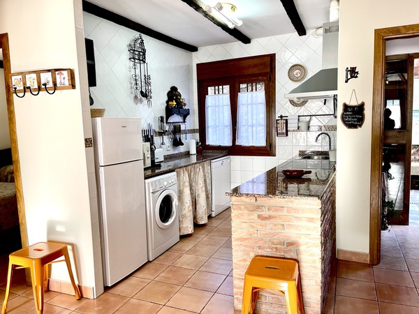 La casa está pensada para que te sientas a gusto en cualquier época del año. Dispone de calefacción central y chimenea de leña, además de una cocina-comedor totalmente equipada con lavadora, lavavajillas, frigorífico, horno, microondas, cafetera italiana y Nespresso, tostador y exprimidor.