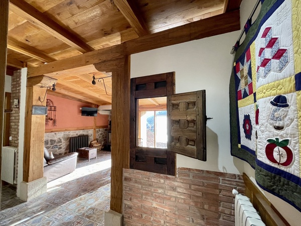 En la planta baja encontrarás un acogedor salón-comedor con chimenea, televisión y una decoración cuidada que invita al descanso. La cocina independiente, totalmente equipada, se comunica directamente con la zona de barbacoa a través de una ventana, facilitando las comidas al aire libre. Completa esta planta un baño completo.