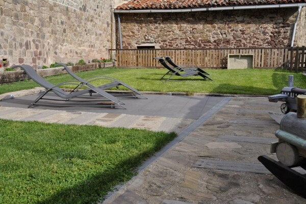 En el exterior, Casa Nogales ofrece un espacio pensado para disfrutar sin prisas: jardín privado y cerrado, asador cubierto, barbacoa, porche y terraza con mobiliario de jardín, además de una piscina con hidromasaje no climatizada (aprox. 3 m de diámetro), perfecta para relajarse en los meses más cálidos.